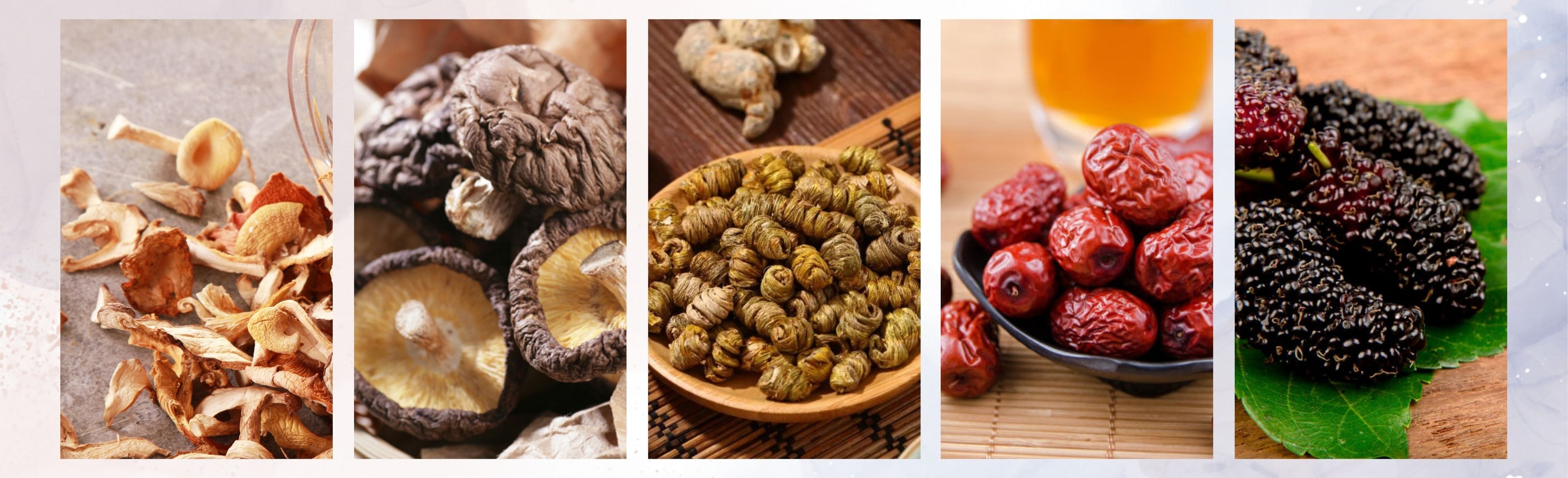 燕窩是指雨燕目雨燕科的部分雨燕和金絲燕屬的幾種金絲燕分泌出來的唾液,再混合其他物質所築成的巢穴。又稱燕菜、燕根、燕蔬菜,燕窩按築巢的地方可分為「屋燕」及「洞燕」兩種,洞燕因其受礦物質影響導致顏色不同,有白燕、黃燕、紅燕之分,而屋燕只有像象牙白一種顏色。市面上所謂的“血燕”,據傳是人工養殖的屋燕是透過“鳥糞燻染法”而製成。 冬蟲夏草,中藥名。表面會附著很多寄生蟲、真菌孢子。為肉座菌目麥角菌科蟲草屬真菌冬蟲夏草菌Cordyceps sinensis( BerK.)Sacc.寄生在蝙蝠蛾科昆蟲幼蟲上的子座及幼蟲的屍體的複合體。具有補腎益肺,止血化痰功效。主治腰膝酸痛、久咳虛喘、勞咳痰血。